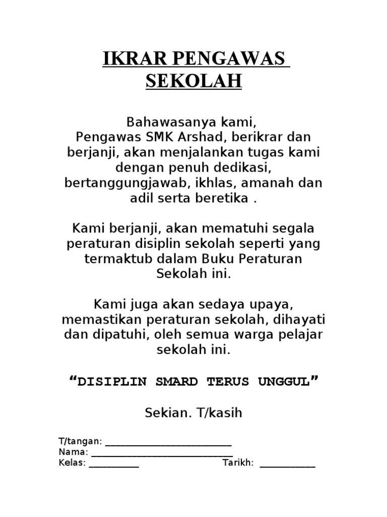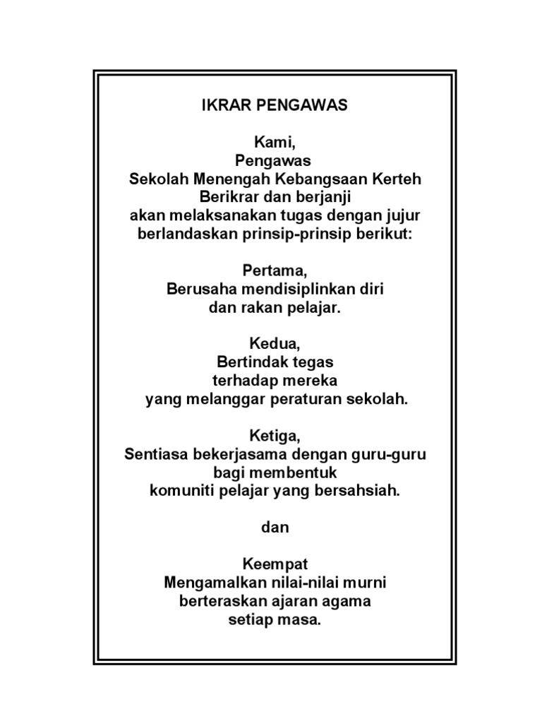 Contoh Ikrar Pengawas Sekolah